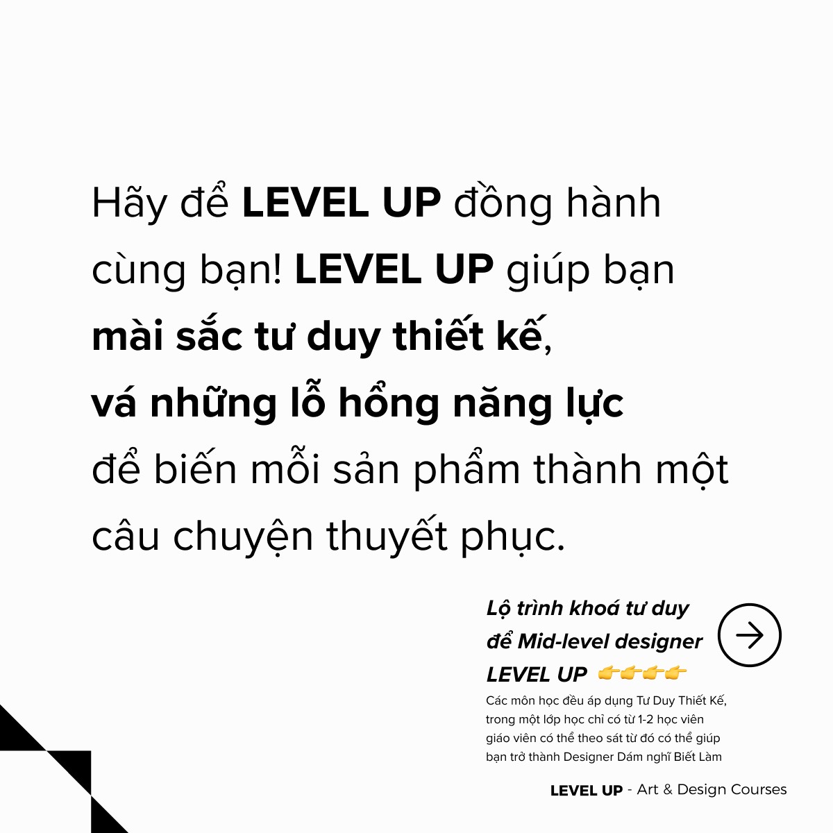 🤘 Hãy để LEVEL UP - Art & Design Courses đồng hành cùng bạn! Với triết lý Dám nghĩ ✅ Biết làm, LEVEL UP giúp bạn mài sắc tư duy thiết kế, vá những lỗ hổng năng lực và học cách sử dụng "Dao cạo Ockham" để biến mỗi sản phẩm thành một câu chuyện thuyết phục nhất.